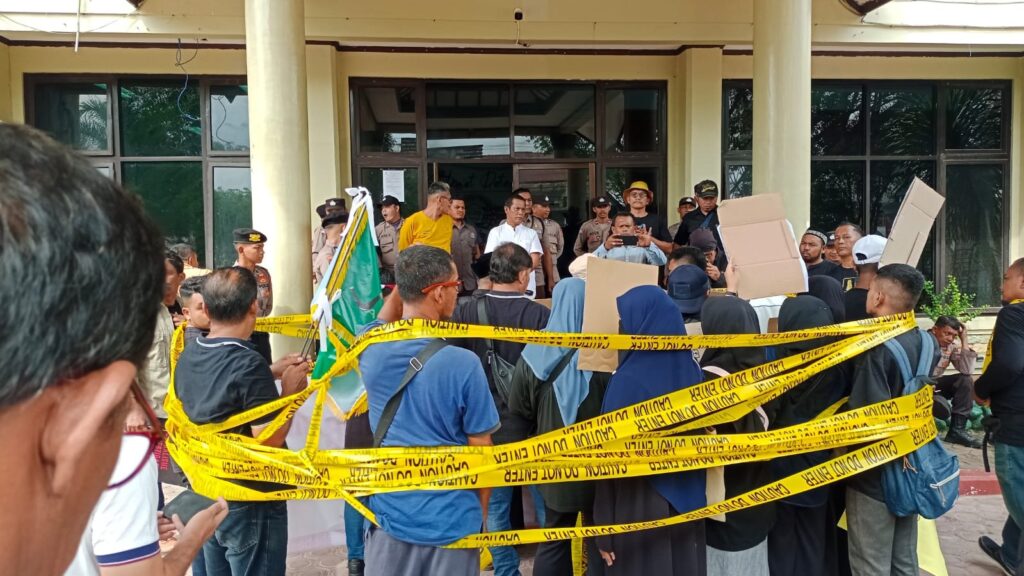 LHOKSEUMAWE – Polres Lhokseumawe mengamankan aksi damai sejumlah wartawan yang berlangsung di halaman gedung DPRK Kota Lhokseumawe, jum’at (31/5/2024).