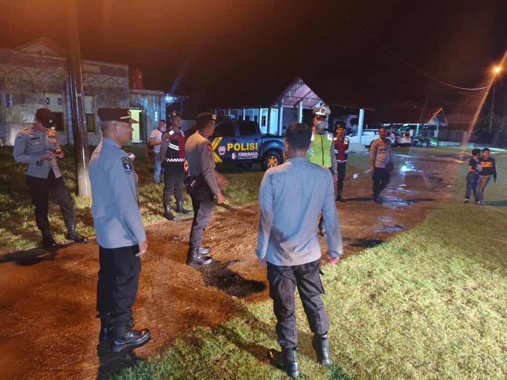 Lhokseumawe - Personel Polsek Dewantara, jajaran Polres Lhokseumawe, melaksanakan patroli malam dalam rangka mengantisipasi gangguan…