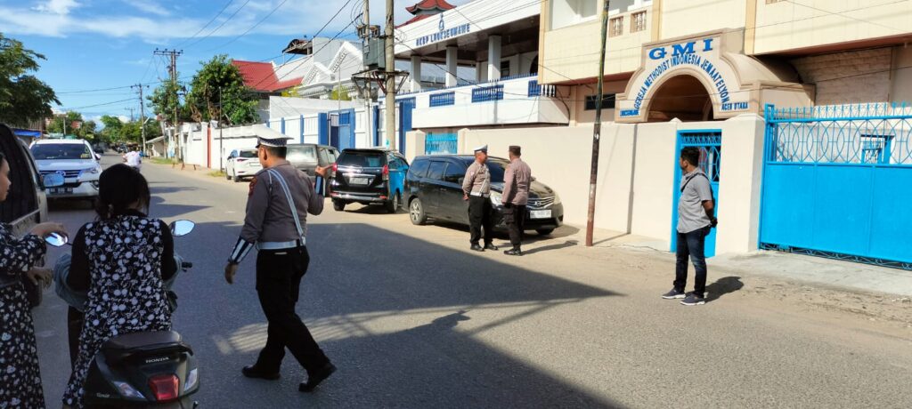 Lhokseumawe – Polres Lhokseumawe melakasanakan pengamanan Jumat Agung menjelang Hari Raya Paskah, umat Kristiani di Kota Lhokseumawe di Gereja Methodist Indonesia (GMI) yang berlokasi di Jalan Cut Meutia, Desa Pusong Lama, Kecamatan Banda Sakti, Kota Lhokseumawe, Jumat (18/4/2025) pagi.