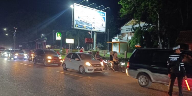 Lhokseumawe – Personel pengamanan Ops Ketupat Seulawah 2025 Polres Lhokseumawe melaksanakan kegiatan pengaturan arus lalu lintas di Jalan Medan – Banda Aceh, tepatnya di depan Kampus Politeknik Negeri Lhokseumawe, Kecamatan Blang Mangat, Kota Lhokseumawe, Rabu (2/4/2025) malam.