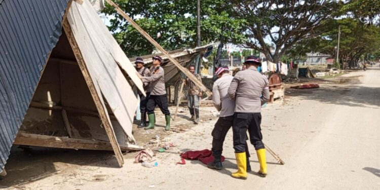 Polres Lhokseumawe Bersihkan Puing Banjir di Jalan Malikussaleh, Kapolres : Akses Warga Harus Segera Pulih