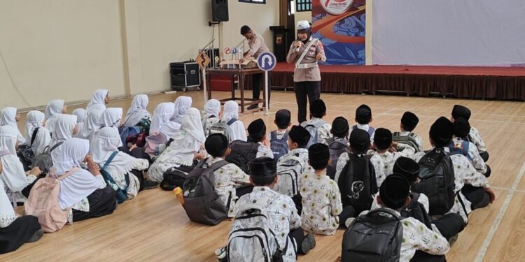 menggelar kegiatan edukasi tertib lalu lintas kepada siswa/i SD Diana Assaufa Lhokseumawe di Gedung Serbaguna Polres Lhokseumawe, Rabu (20/11/2024) pagi.
