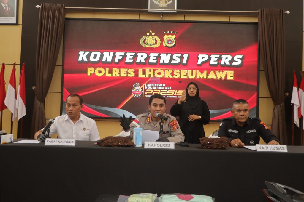 Pengungkapan kasus ini disampaikan kepada awak saat konfrensi pers oleh Kapolres Lhokseumawe ABBP Dr. Ahzan., S.H, S.I.K., M.S.M., M.H didampingi Kasat Narkoba IPTU Arizal dan Kasi Humas Polres Lhokseumawe Salman Alfarasi., S.H., M.M dihadapan sejumlah awak media yang berlangsung digedung serbaguna Polres Lhokseumawe, rabu (8/4/2026) pagi.