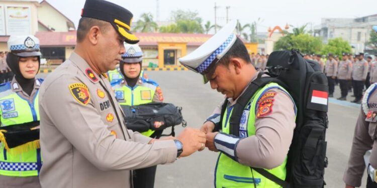 LHOKSEUMAWE – Kapolres Lhokseumawe AKBP Henki Ismanto, S.I.K memimpin Apel Kesiapan dan penyerahan kelengkapan perorangan dan lapangan (Koperlap) personil pengamanan TPS yang berlangsung di halaman Mapolres Lhokseumawe, Selasa (6/2/2024).