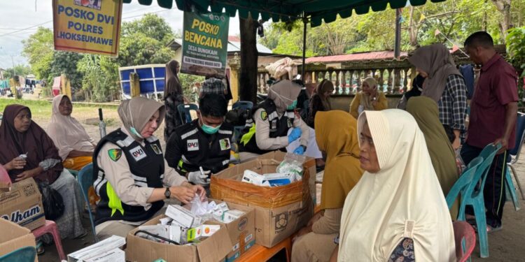 Polres Lhokseumawe Gelar Bakti Kesehatan untuk Pengungsi Banjir di Desa Keude Bungkaih