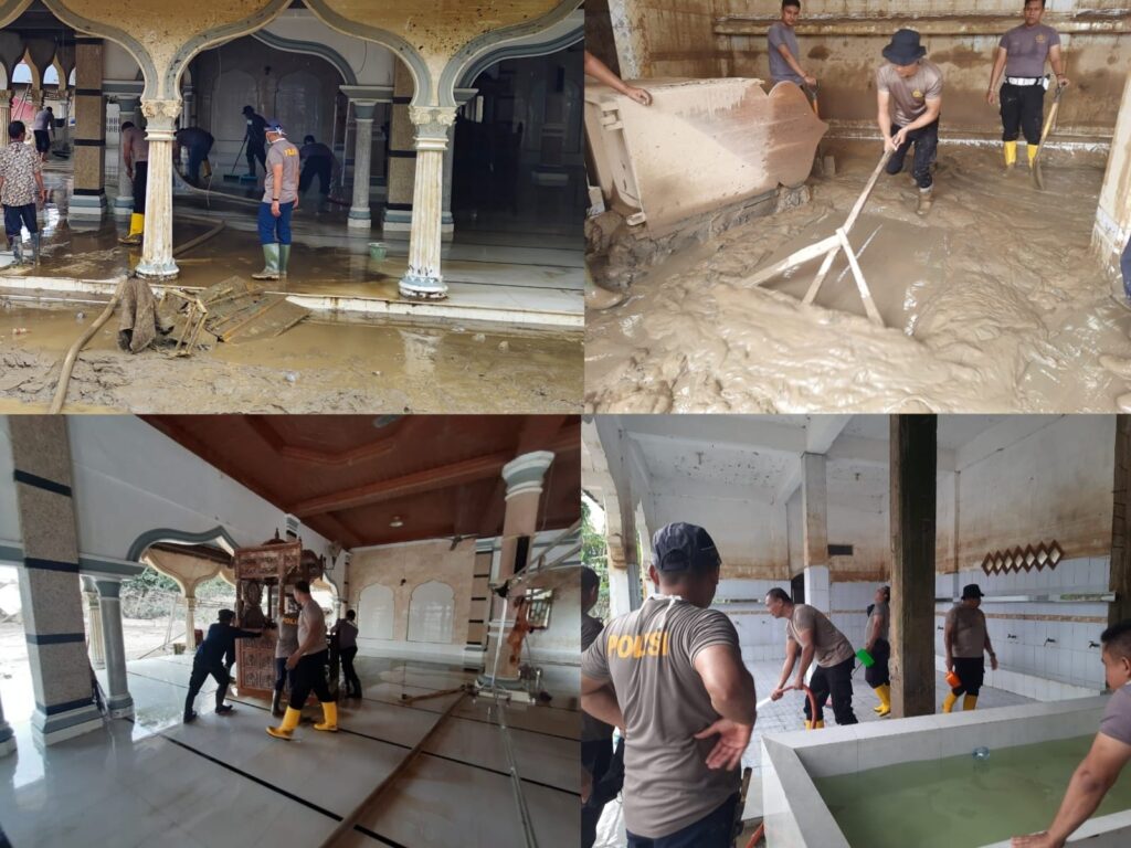 “Kami melaksanakan bakti sosial di masjid ini karena merupakan salah satu rumah ibadah yang terdampak banjir. Tujuannya agar masjid ini dapat segera digunakan kembali oleh warga untuk melaksanakan ibadah secara bersama-sama,” ujar Kompol Salmidin.