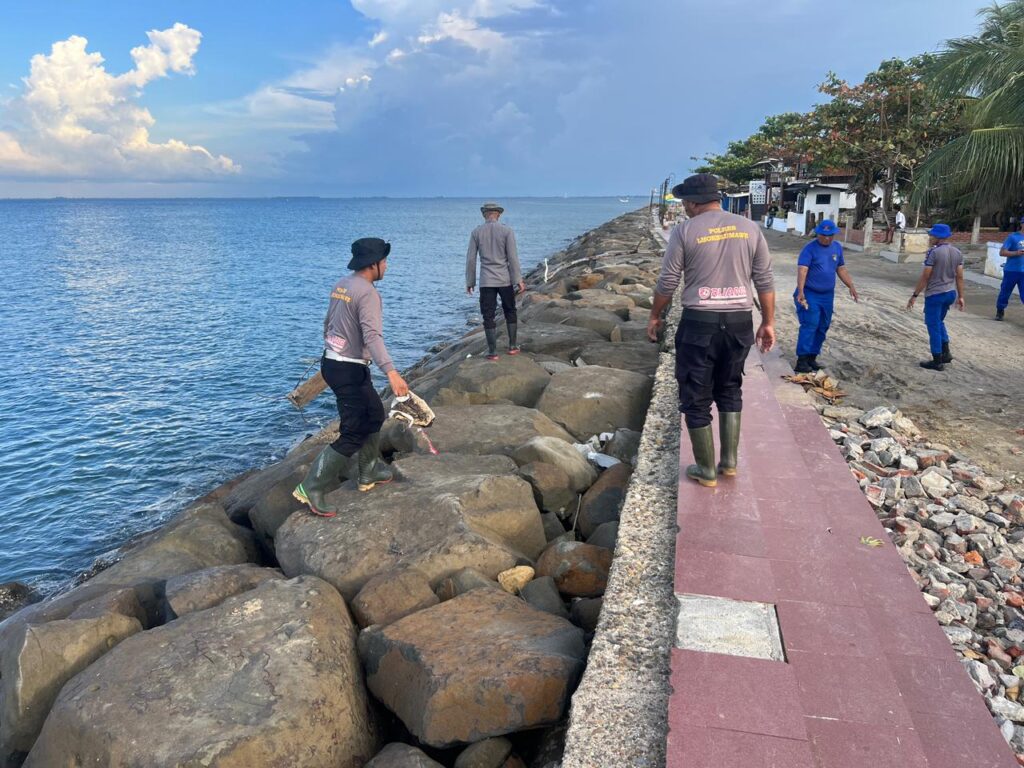 Sejak pagi, para personel tampak menyisir kawasan pantai, memungut sampah plastik, membersihkan ranting kayu yang berserakan, serta merapikan area pesisir agar terlihat lebih bersih dan indah. Suasana kebersamaan dan semangat gotong royong begitu terasa, mencerminkan komitmen aparat dalam menjaga kelestarian lingkungan.