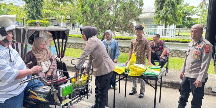 Lhokseumawe – Polres Lhokseumawe kembali menunjukkan kepeduliannya kepada masyarakat dengan menggelar Gerakan Pangan Murah (GPM) Polri di Desa Mon Geudong, Kecamatan Banda Sakti, Kota Lhokseumawe, Kamis (25/9/2025). Kegiatan ini menjadi langkah nyata dalam menjaga stabilitas pasokan dan harga beras sekaligus meringankan beban ekonomi masyarakat.