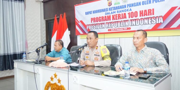LHOKSEUMAWE – Polres Lhokseumawe mengadakan rapat koordinasi ketahanan pangan sebagai bagian dari Program Kerja 100 Hari Presiden Republik Indonesia yang berlangsung di Aula Tribrata Polres Lhokseumawe, kamis (7/11/2024) pagi.
