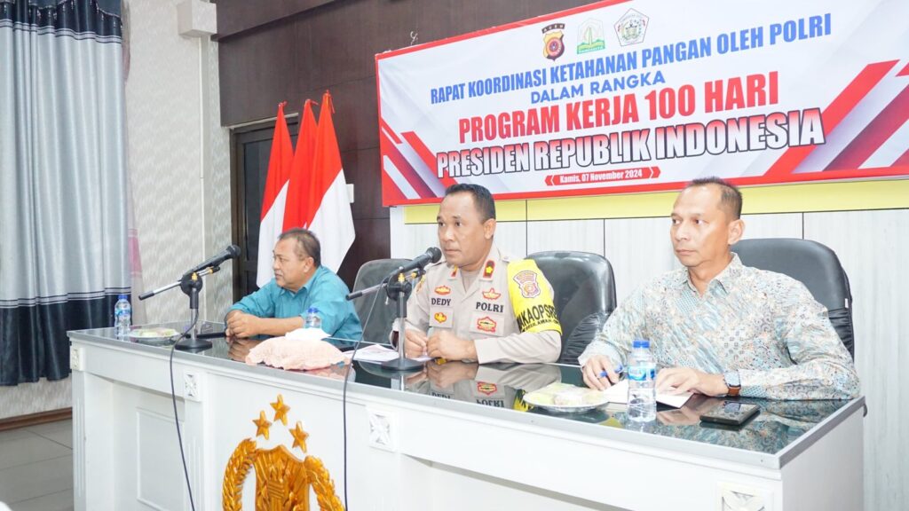 LHOKSEUMAWE – Polres Lhokseumawe mengadakan rapat koordinasi ketahanan pangan sebagai bagian dari Program Kerja 100 Hari Presiden Republik Indonesia yang berlangsung di Aula Tribrata Polres Lhokseumawe, kamis (7/11/2024) pagi.
