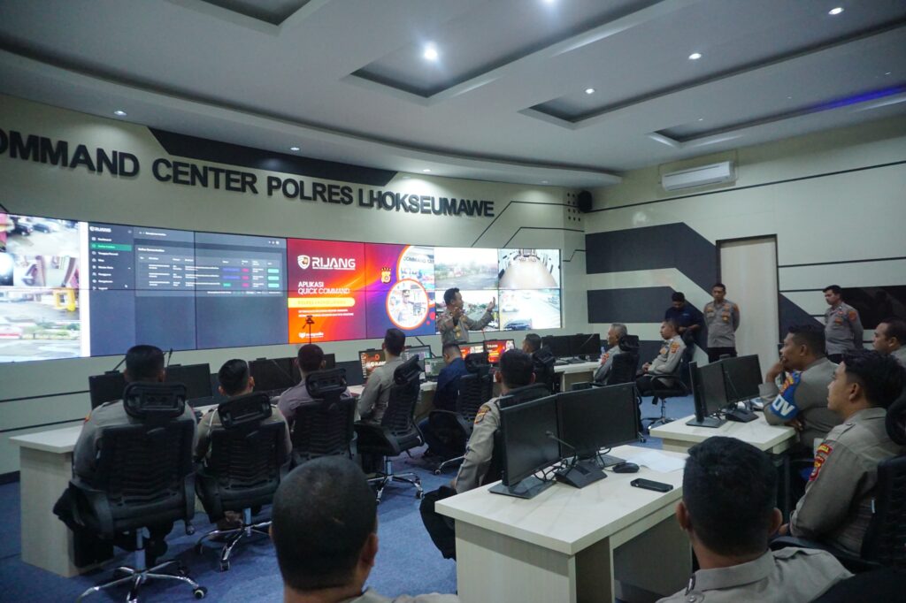 Lhokseumawe – Polres Lhokseumawe melaksanakan kegiatan sosialisasi dan pelatihan penggunaan aplikasi Rijang Quick Command kepada personel di Ruang Command Center Polres Lhokseumawe, Jumat siang (3/10/2025).