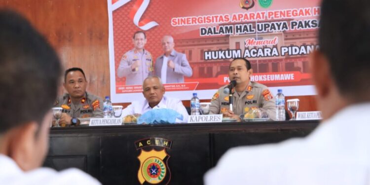 Polres Lhokseumawe Gelar Sosialisasi Tentang Sinergitas Aparat Penegak Hukum Dalam Hal Upaya Paksa