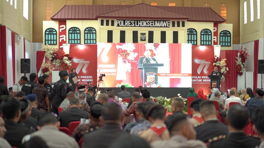 LHOKSEUMAWE – Polres Lhokseumawe menggelar syukuran Hari Bhayangkara ke-77, kegiatan tersebut berlangsung di Gedung Serbaguna Wira Satya, Mapolres Lhokseumawe, Sabtu (1/7/2023) pagi.