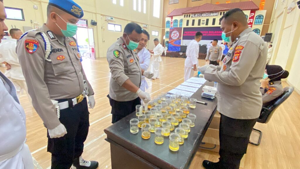 Selain ujian beladiri, sebut AKP Erpansyah, Polres Lhokseumawe juga mengadakan tes urine untuk memastikan tidak ada personel yang terlibat dalam penyalahgunaan narkoba.