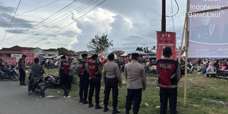 LHOKSEUMAWE – Polres Lhokseumawe berikan pelayananan pengamanan kampanye tatap muka pasangan calon (paslon) nomor urut 2 Dr. Sayuti Abubakar , SH, MH – Husaini, SE di Lapangan gajah gampong Hagu barat laut, Kec. Banda Sakti, Kota Lhokseumawe, sabtu (23/11/2024) sore.
