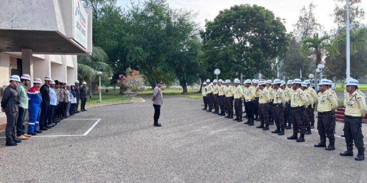 Lhokseumawe – Polres Lhokseumawe melalui Satuan Binmas melaksanakan pengecekan terhadap Satuan Pengamanan (Satpam) Perusahaan Aneka Gas (PAG) di Blang Lancang, Kecamatan Muara Satu, Kota Lhokseumawe, Selasa (23/9/2025) pagi.