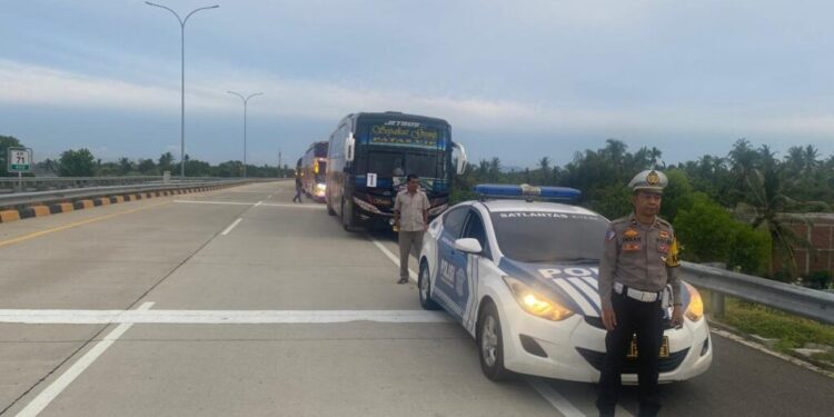 Pengawalan bus rombongan jama’ah haji dari Asrama haji Banda Aceh pada hari Rabu waktu setempat. Dengan penuh kehati-hatian, petugas kepolisian turut serta dalam pengawalan dari bandara ke tempat tinggal menuju Kota Lhokseumawe.
