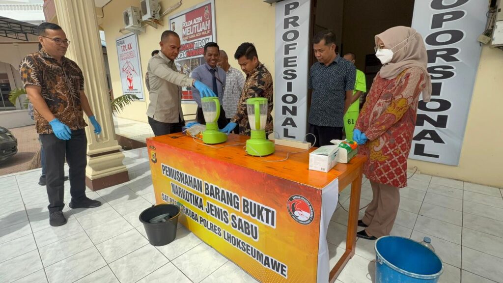 Pemusnahan dilakukan dengan disaksikan oleh para pejabat dan instansi terkait, di antaranya Kasat Resnarkoba Polres Lhokseumawe AKP Saiful Kamal, S.T.K., S.I.K., M.A, Jaksa Penuntut Umum, Hakim PN Lhoksukon, Penanggung Jawab Farmasi Dinas Kesehatan Kota Lhokseumawe, Kasat Tahti, Kasubsibankum, Kanit Paminal, serta kuasa hukum tersangka.