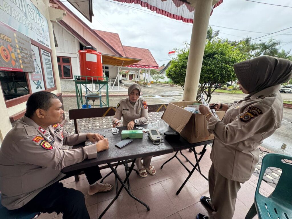 Lhokseumawe – Kapolres Lhokseumawe mengerahkan Seksi Kedokteran dan Kesehatan (Sidokkes) Polres Lhokseumawe melaksanakan kegiatan bakti kesehatan (Baktikes) berupa pengecekan kesehatan serta pemberian obat-obatan dan vitamin kepada personel Polsek jajaran yang terdampak bencana banjir, Senin (15/12/2025).