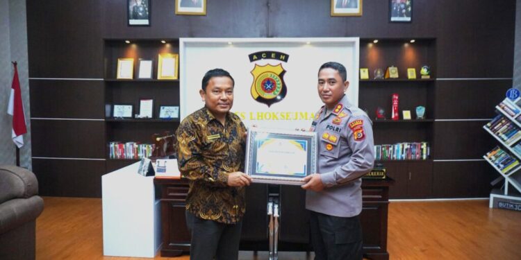 Lhokseumawe – Kapolres Lhokseumawe AKBP Dr. Ahzan, S.H., S.I.K., M.S.M., M.H menerima langsung piagam penghargaan dari Kepala Kantor Pelayanan Perbendaharaan Negara (KPPN) Lhokseumawe, Kurniawan, dalam sebuah prosesi sederhana yang berlangsung di ruang kerja Kapolres, Kamis (22/5/2025) pagi.