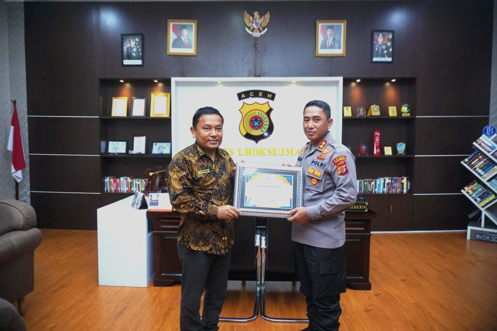 Lhokseumawe – Kapolres Lhokseumawe AKBP Dr. Ahzan, S.H., S.I.K., M.S.M., M.H menerima langsung piagam penghargaan dari Kepala Kantor Pelayanan Perbendaharaan Negara (KPPN) Lhokseumawe, Kurniawan, dalam sebuah prosesi sederhana yang berlangsung di ruang kerja Kapolres, Kamis (22/5/2025) pagi.