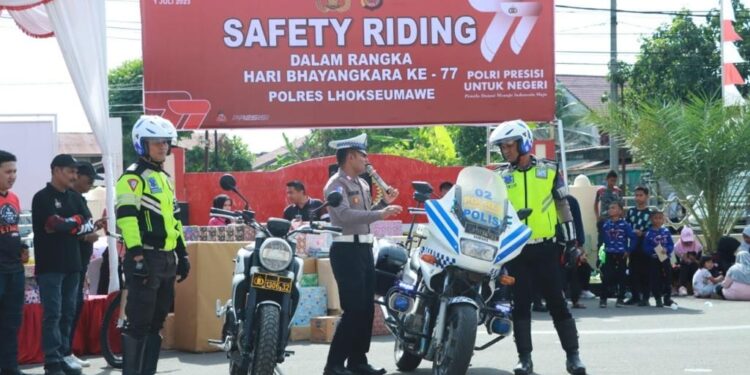 Kapolres Lhokseumawe AKBP Henki Ismanto, S.I.K melalui Kasi Humas Salman Alfarasi, SE, MM mengatakan, acara Safety riding tersebut merupakan salah satu rangkaian acara dalam rangka menyambut hari Bhayangkara Ke-77.