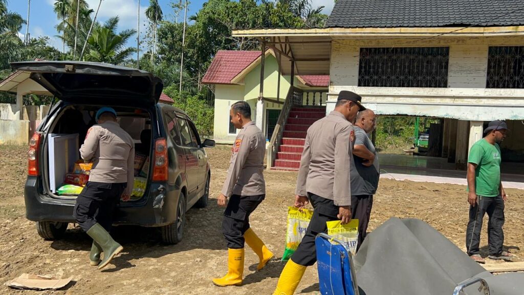 Aceh Utara – Polres Lhokseumawe kembali menunjukkan kepedulian terhadap warga terdampak banjir dengan menyalurkan bantuan sosial ke Posko Pengungsian Desa Meunasah Dayah, Kecamatan Simpang Keramat, Minggu (30/11/2025) sekitar pukul 08.30 WIB.
