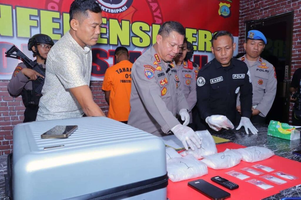 “Tim opsnal langsung melakukan penyergapan di area kedatangan Bandara. Saat digeledah, petugas menemukan enam bungkus besar sabu yang disembunyikan dalam koper berlapis plastik hitam di antara pakaian pelaku, seberat 3,5 Kilogram.Selain itu, diamankan pula dua unit handphone sebagai alat komunikasi pelaku,” jelasnya dikutip dari RRI, Kamis (7/8/25).