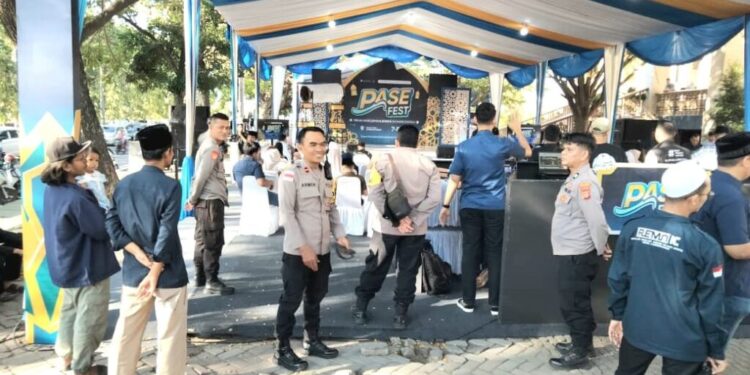LHOKSEUMAWE – Aparat Kepolisian melaksanakan pengamanan kegiatan penutupan Festival Pekan Akselerasi dan Sinergi Ekonomi Syariah (PASE) dalam rangka menyemarakkan bulan suci Ramadhan 1447 Hijriah yang berlangsung di halaman Masjid Agung Islamic Center, Jalan Merdeka Timur, Desa Kampung Jawa Lama, Kecamatan Banda Sakti, Kota Lhokseumawe, Minggu (8/3/2026) sore.