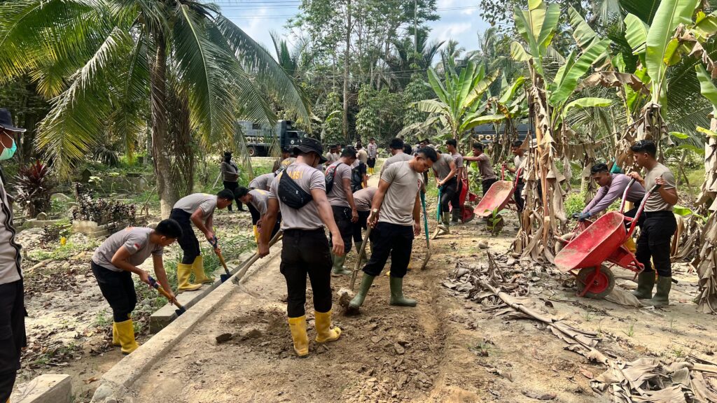 ACEH UTARA – Kepedulian Polri terhadap masyarakat terdampak bencana kembali diwujudkan melalui kegiatan gotong royong (korve) pemulihan pasca banjir di Jalan Lorong Dusun Teungoh, Gampong Glee Dagang, Kecamatan Sawang, Kabupaten Aceh Utara, Rabu (11/2/2026).