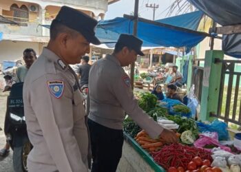 LHOKSEUMAWE - Personel Polsek Nisam berupaya menjaga stabilitas stok sembako di pasar tradisional dan toko kelontong di Kecamatan Nisam,...