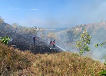 LHOKSEUMAWE - Kebakaran lahan seluas satu hektar di atas perbukitan di dalam komplek Bukit Indah Kampus Unimal, Desa Blang...
