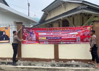 LHOKSEUMAWE - Jajaran Polres Lhokseumawe melakukan sosialisasi pendaftaran penerimaan anggota Polri tahun 2023 dengan memasang spanduk di wilayah hukum...