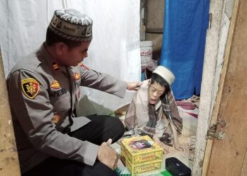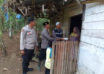 LHOKSEUMAWE - Anjangsana jelang buka puasa, jajaran Polsek Blang Mangat, Polres Lhokseumawe membagikan 40 nasi kotak kepada anak yatim dan...
