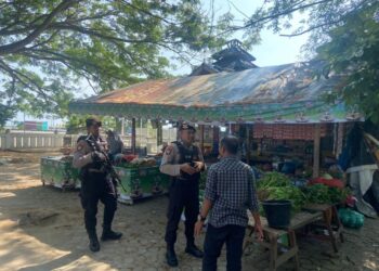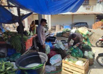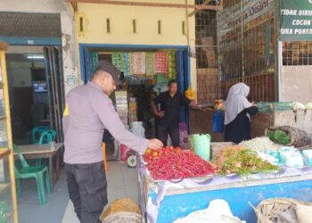 LHOKSEUMAWE - Personel Polsek Blang Mangat rutin turun ke pasar selama bulan suci Ramadhan guna memantau stabilitas stok sembako,...