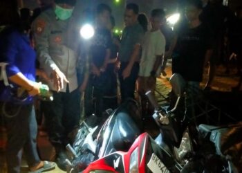 LHOKSEUMAWE - Personel Polsek Muara Satu mendatangi TKP laka tunggal di lokasi pembuatan parit badan jalan di kawasan Blang...