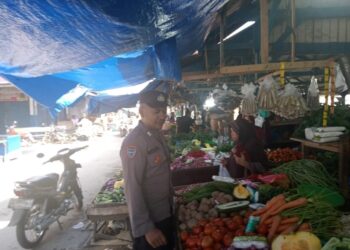 LHOKSEUMAWE - Personel Polsek Syamtalira Bayu kembali turun ke pasar Keude Bayu, Aceh Utara, wilayah hukum Polres Lhokseumawe, Senin...