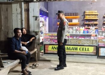 LHOKSEUMAWE- Personel Polsek Blang Mangat melaksanakan patroli rutin antisipasi gangguan Kamtibmas di Gampong (Desa) Baloy dan Kumbang Punteut, Kecamatan...
