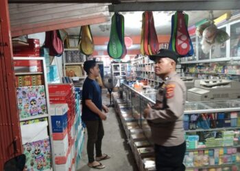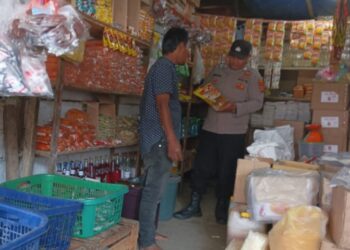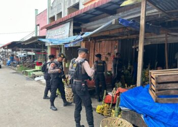 LHOKSEUMAWE - Personel Polsek Nisam rutin blusukan ke pasar Keude Amplah, Kecamatan Nisam, Aceh Utara, wilayah hukum Polres Lhokseumawe,...