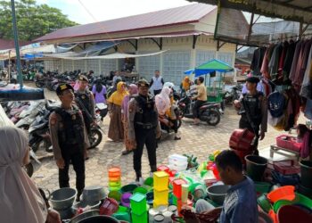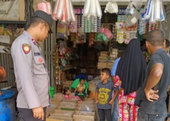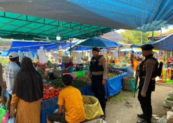 LHOKSEUMAWE - Porsonel Polsek Samudera rutin menyambagi pedagang guna memastikan stok sembako di pasar Kecamatan Samudera, Aceh Utara, wilayah...