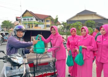 LHOKSEUMAWE – Puluhan Tukang becak dan warga yang melintas tampak antusias menerima takjil gratis yang diberikan oleh Ibu-ibu Bhayangkari Cabang...