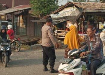 LHOKSEUMAWE - Strong poin sore, personel Polsek Meurah Mulia melayani pengguna jalan raya di Simpang Meunasah Mee, Kecamatan Meurah...