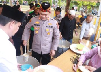 LHOKSEUMAWE - Ratusan warga tampak antusias mengantri untuk mendapatkan kanji rumbi gratis yang dibagikan langsung oleh Kapolres Lhoksemawe, AKBP Henki...