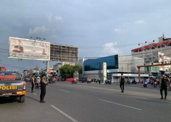 LHOKSEUMAWE - Tim Unit Reaksi Cepat (URC) Sat Samapta Polres Lhokseumawe mengatur arus lalu lintas di sejumlah titik persimpangan...