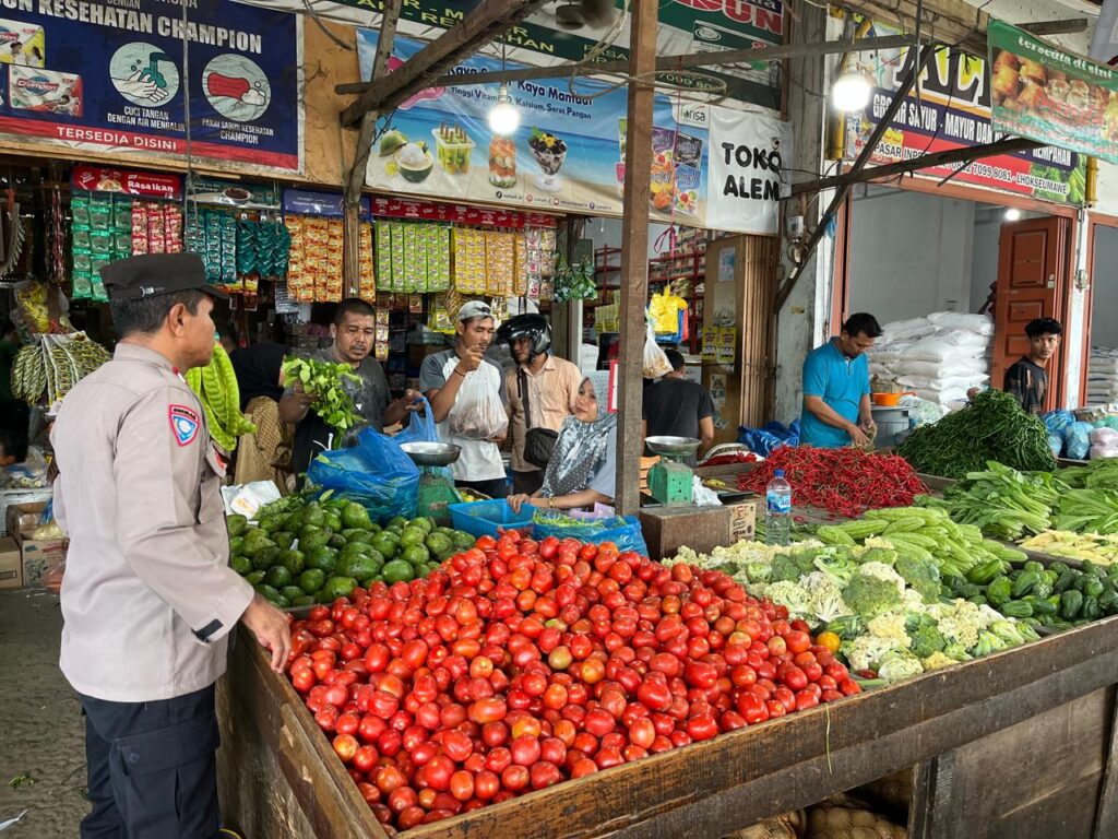 Lhokseumawe – Personel Polsek Banda Sakti melaksanakan patroli di kawasan Pasar Inpres, Kecamatan Banda Sakti, Kota Lhokseumawe, pada Minggu (19/10/2025). Kegiatan ini bertujuan untuk menjaga situasi keamanan dan ketertiban masyarakat (guantibmas) agar tetap kondusif di kawasan pusat aktivitas ekonomi warga.