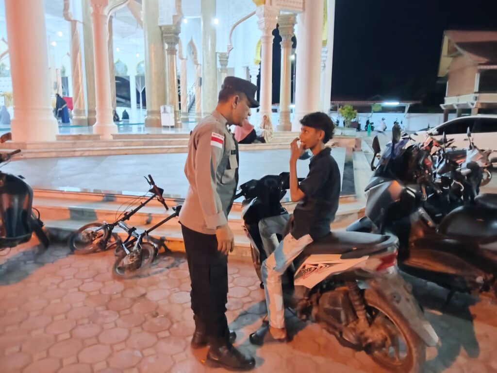 Lhokseumawe – Guna memastikan umat Muslim dapat menjalankan ibadah dengan aman dan khusyuk selama bulan suci Ramadhan, personel Polsek Banda Sakti, Polres Lhokseumawe mengintensifkan patroli serta pengamanan di sejumlah masjid saat pelaksanaan Shalat Tarawih, Sabtu (14/3/2026) malam.
