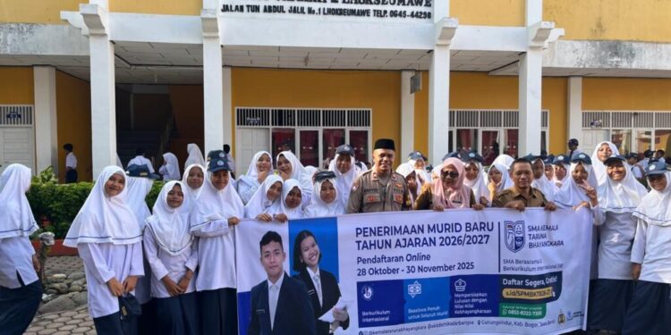 Lhokseumawe – Dalam rangka mendukung peningkatan kualitas pendidikan serta membentuk generasi muda yang berkarakter dan disiplin, Polsek Banda Sakti melaksanakan kegiatan sosialisasi Seleksi Penerimaan Murid Baru (SPMB) SMA Kemala Taruna Bhayangkara Tahun Ajaran 2026/2027 di SMP Negeri 2 Lhokseumawe, Senin (3/11/2025) sekitar pukul 07.30 WIB.