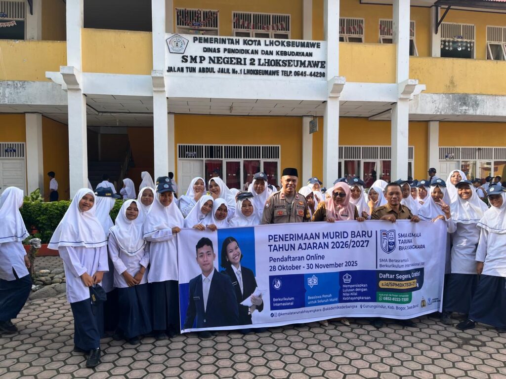 Lhokseumawe – Dalam rangka mendukung peningkatan kualitas pendidikan serta membentuk generasi muda yang berkarakter dan disiplin, Polsek Banda Sakti melaksanakan kegiatan sosialisasi Seleksi Penerimaan Murid Baru (SPMB) SMA Kemala Taruna Bhayangkara Tahun Ajaran 2026/2027 di SMP Negeri 2 Lhokseumawe, Senin (3/11/2025) sekitar pukul 07.30 WIB.