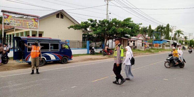 Mereka bertugas menjaga ketertiban dan kelancaran arus lalu lintas di jalan tersebut, terutama di sekitar pintu masuk sekolah MA/SMP guna mengantisipasi kemacetan yang rawan terjadi di wilayah Kecamatan Blang Mangat, ungkap Kapolsek
