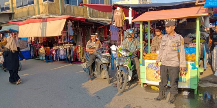Polsek Blang Mangat Kerahkan Personil Pengamanan Simpang dan Pasar Menjelang Buka Puasa di Blang Mangat